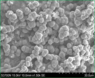 The SEM (Scanning Electron Microscopy) analysis utilized is a collection of microscopic images of corrosion related by-products. This can provide a quick and effective method of determining if actions of bacteria are part of any corrosion related issues. It can be difficult to image, but any features formed by bacteria can easily be observed. Using a database of imagery, it is possible to identify a specific feature relative to each bacteria type. Their respective bio-film characteristics are quite unique as well.
